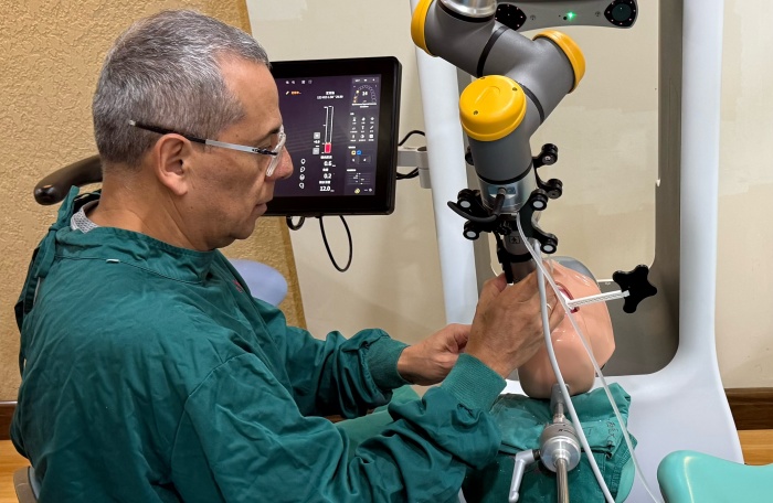 在临床技术交流环节,Fernando Rojas-Vizcaya教授重点关注医院口腔修复科数字化诊疗体系建设,肯定了科室在数字化修复技术领域的创新实践。他现场观摩并体验了我院种植机器人的临床应用,对该技术在提升种植精准度、效率与安全性上的优势予以赞赏,还围绕数字化修复流程优化、种植美学临床应用等方向分享国际经验。