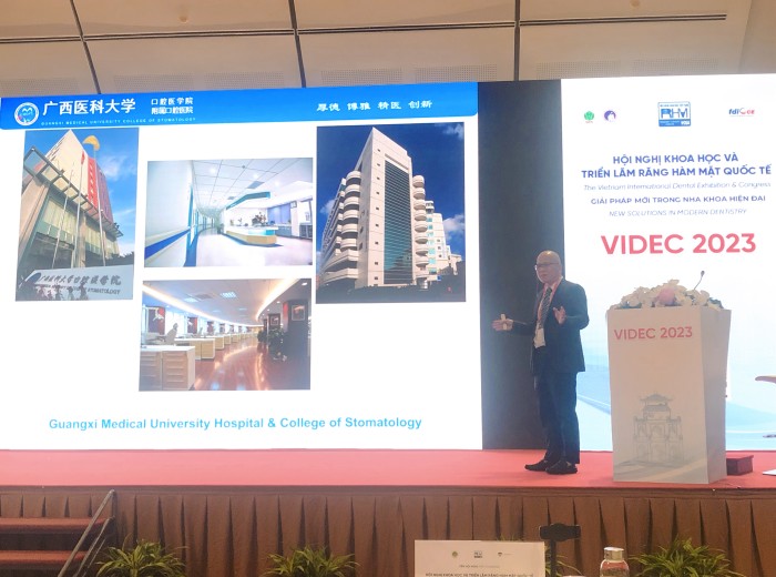 应越南口腔医学会会长 Tran Cao Binh教授的邀请,我院副院长梁飞新教授一行三人于8月16日至19日赴越南河内参加2023·越南国际口腔医学大会暨国际口腔展览会。这是自新冠疫情爆发以来,越南口腔医学会首次举办的线下国际口腔医学大会暨口腔博览会。大会由越南口腔医学会主办,得到越南卫生部的大力支持,是越南规模最大的口腔医学年度学术会议以及口腔展会,来自法国、澳大利亚、意大利、中国、日本、韩国以及东盟各国等20多个国家的专家学者共赴盛会,注册参会代表3000余人。